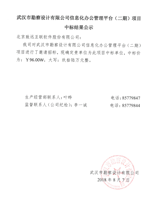武漢市勘察設(shè)計有限公司信息化辦公管理平臺(二期)項目中標(biāo)結(jié)果公示