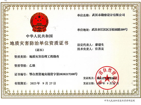 地質(zhì)災(zāi)害治理工程設(shè)計(jì)乙級(jí)資質(zhì)
