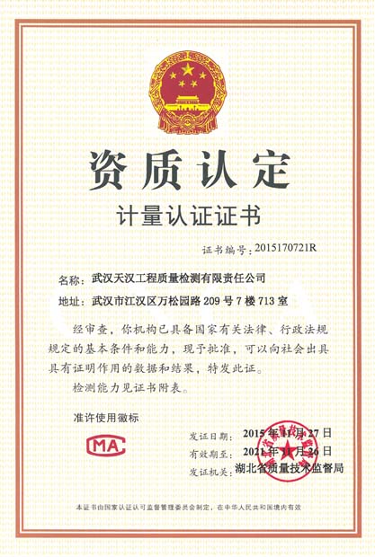資質(zhì)認(rèn)定計(jì)量認(rèn)證證書(shū)