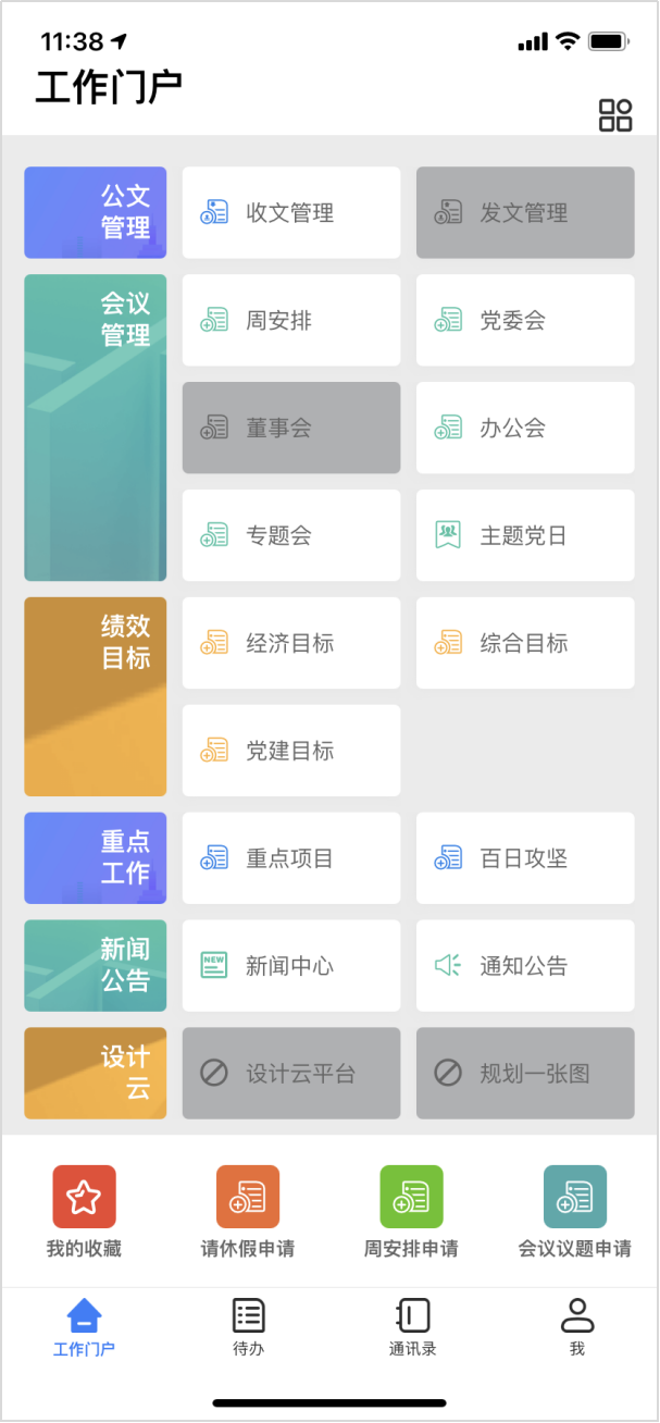 目前,該平臺成功上線了收文管理、會議管理、績效目標(biāo)、重點工作、考勤管理和車輛管理功能板塊。在勘察公司信息與創(chuàng)研中心項目組成員的努力下,搭建了流轉(zhuǎn)高效、精準(zhǔn)督辦的公文體系,大幅度提升了集團公文辦理效率;實現(xiàn)了會議管理、績效目標(biāo)、重點工作等數(shù)據(jù)查看方便、跟進有序;完成了集團管理權(quán)限范圍內(nèi)人員請銷假和用車的網(wǎng)上申報、網(wǎng)上審批和網(wǎng)上歸檔。
