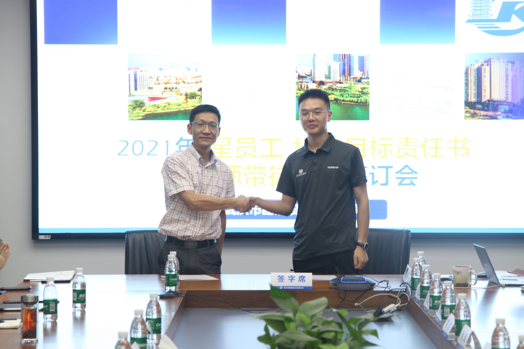 7月20日,公司舉行2021屆“星員工”培養(yǎng)目標(biāo)責(zé)任書(shū)暨導(dǎo)師帶徒協(xié)議簽訂會(huì)。會(huì)上,各部門2021屆新員工與導(dǎo)師簽訂了師徒協(xié)議,標(biāo)志著公司2021屆新員工培養(yǎng)工作正式開(kāi)始。公司總經(jīng)理施木俊及相關(guān)領(lǐng)導(dǎo)出席會(huì)議,新員工部門負(fù)責(zé)人,2021屆“星員工”及導(dǎo)師參加會(huì)議。