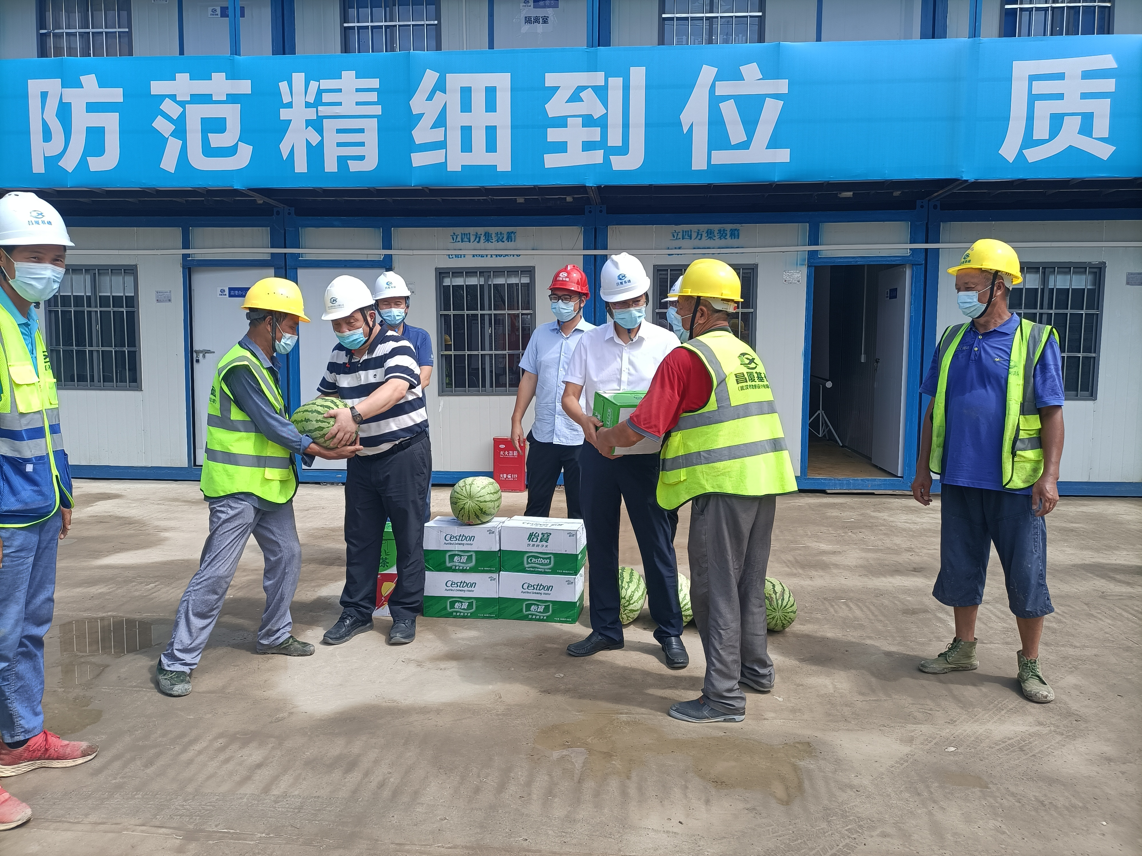 同時(shí),公司領(lǐng)導(dǎo)在項(xiàng)目現(xiàn)場(chǎng)開展了送清涼活動(dòng),為一線人員送上礦泉水、西瓜、花露水、藿香正氣水等防暑降溫物資及個(gè)人防護(hù)用品,并叮囑在高溫堅(jiān)守崗位的一線職工要注意勞逸結(jié)合,做好疫情個(gè)人防護(hù),消除各類安全隱患,確保夏季安全生產(chǎn)。(綜合部(黨群工作部)