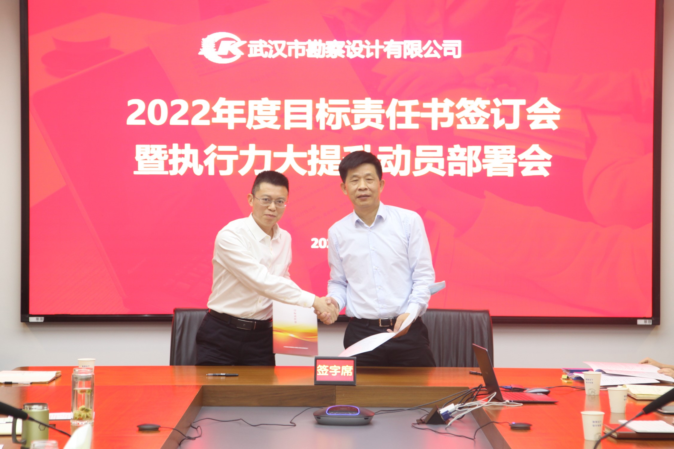 4月14日上午,公司在1717會議室組織召開“執(zhí)行力大提升”行動動員部署會暨2022年度目標(biāo)責(zé)任書簽訂會。會議圍繞武漢城建集團(tuán)“萬千百十一”、“執(zhí)行力大提升”、“揭榜掛帥”三大行動作出了宣貫部署,以高質(zhì)量完成年度各項任務(wù)為目標(biāo)導(dǎo)向,進(jìn)一步統(tǒng)一思想、分解任務(wù)、強化目標(biāo)、落實責(zé)任,為公司全年工作制定了科學(xué)的行動指南、打下了堅實的思想基礎(chǔ)。