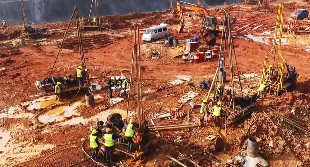 在施工勘察階段,根據(jù)業(yè)主要求,勘察需與施工同步進(jìn)行,彼時(shí)正值基坑開(kāi)挖,作業(yè)面少,但項(xiàng)目任務(wù)重、時(shí)間緊。在接到業(yè)主進(jìn)場(chǎng)通知后,團(tuán)隊(duì)迅速召集了近百臺(tái)鉆機(jī)及相關(guān)作業(yè)人員,就作業(yè)面少問(wèn)題,團(tuán)隊(duì)人員不斷與施工總包方溝通協(xié)調(diào)并制定施工、勘察方案,最終通過(guò)團(tuán)隊(duì)的拼搏努力及與總包方的密切配合,順利完成了施工勘察任務(wù)。