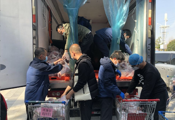 同樣暖心的舉動(dòng)也發(fā)生在十里景秀社區(qū),3月12日,當(dāng)公司下沉人員了解到社區(qū)居民“買肉難”的情況后,他們馬上動(dòng)員一切資源,多次跑超市,對(duì)接物資事宜,最終爭(zhēng)取到300份“愛心肉”,讓社區(qū)困難家庭吃上了放心肉。